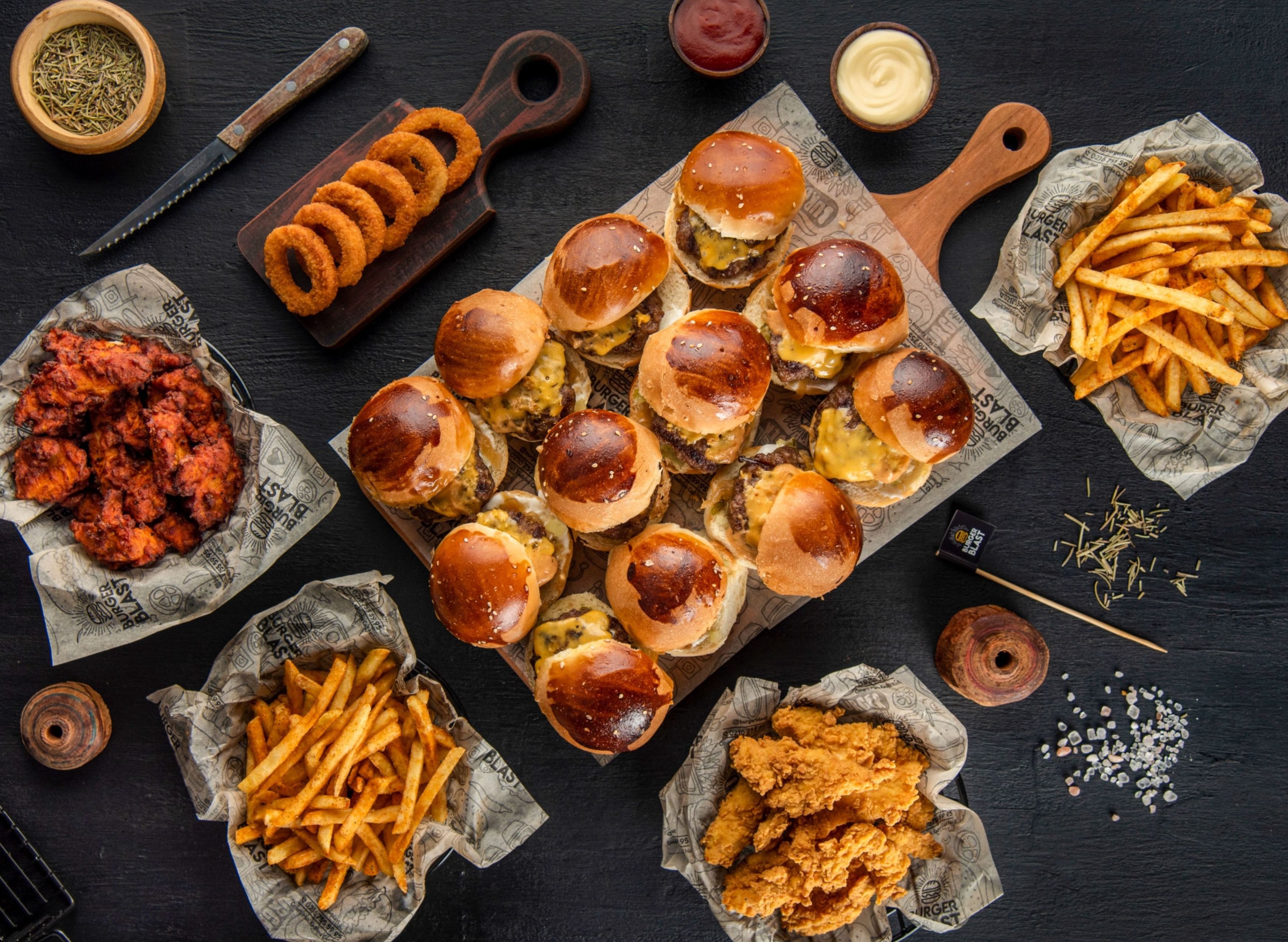 100 gr. dana köfte, patates kızartması, domates, biber, ketçap, mayonez