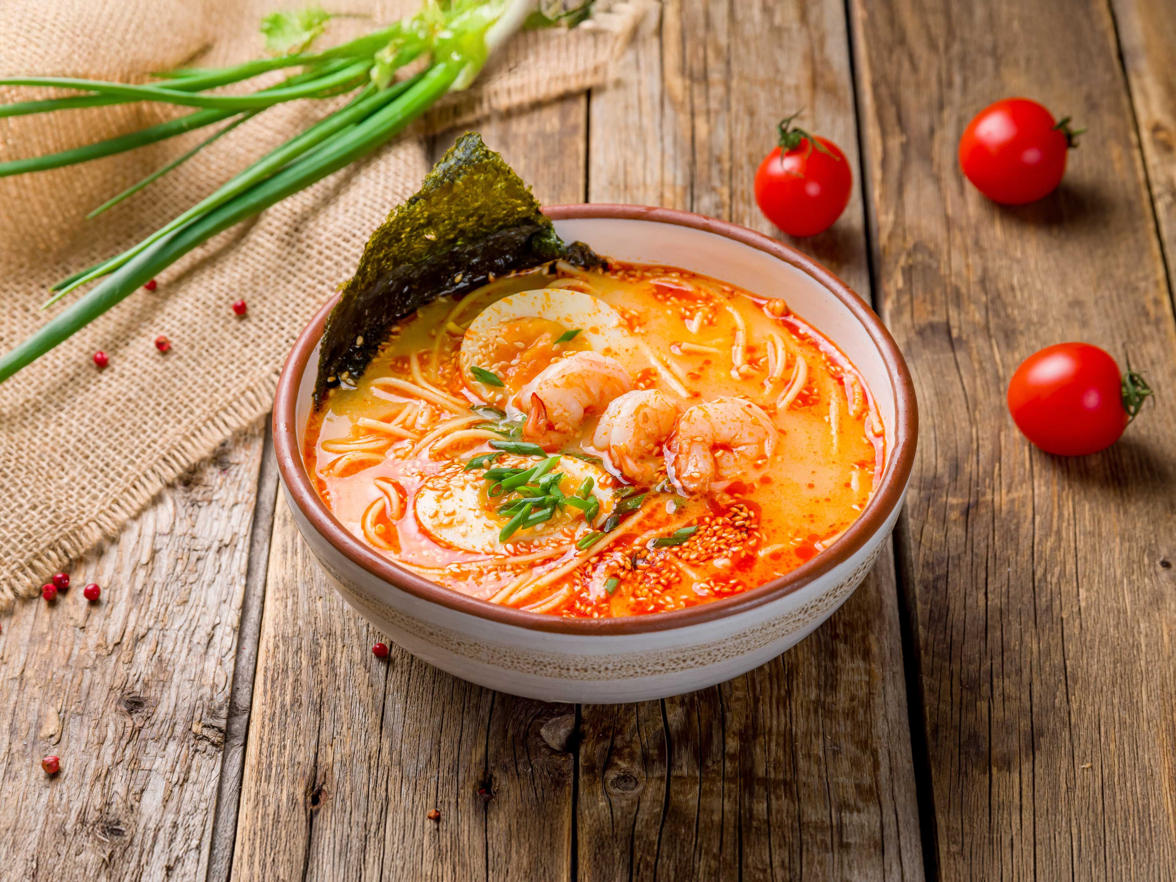 Karides (3 adet), mantar, kişniş, tom yum ezmesi. Soya sosu ile