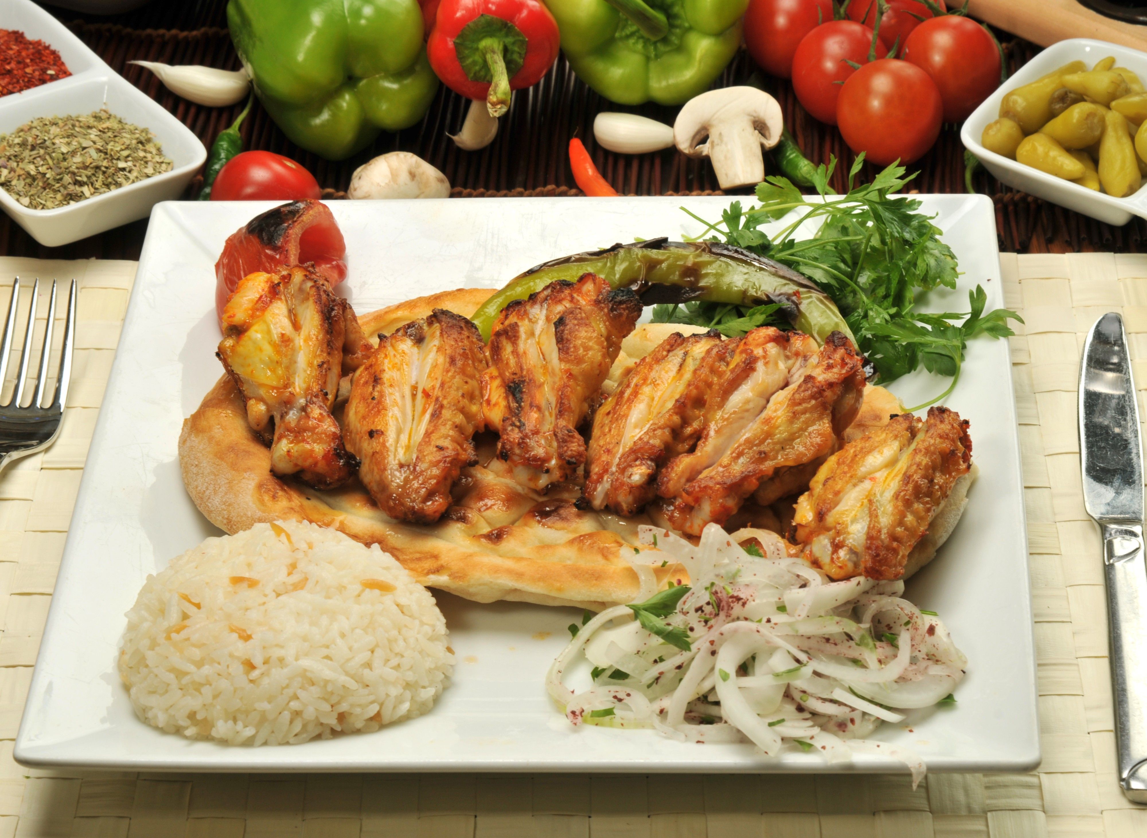 1 kg. tavuk şiş. Yeşillik, sumaklı soğan, 3 adet tandır lavaş ile