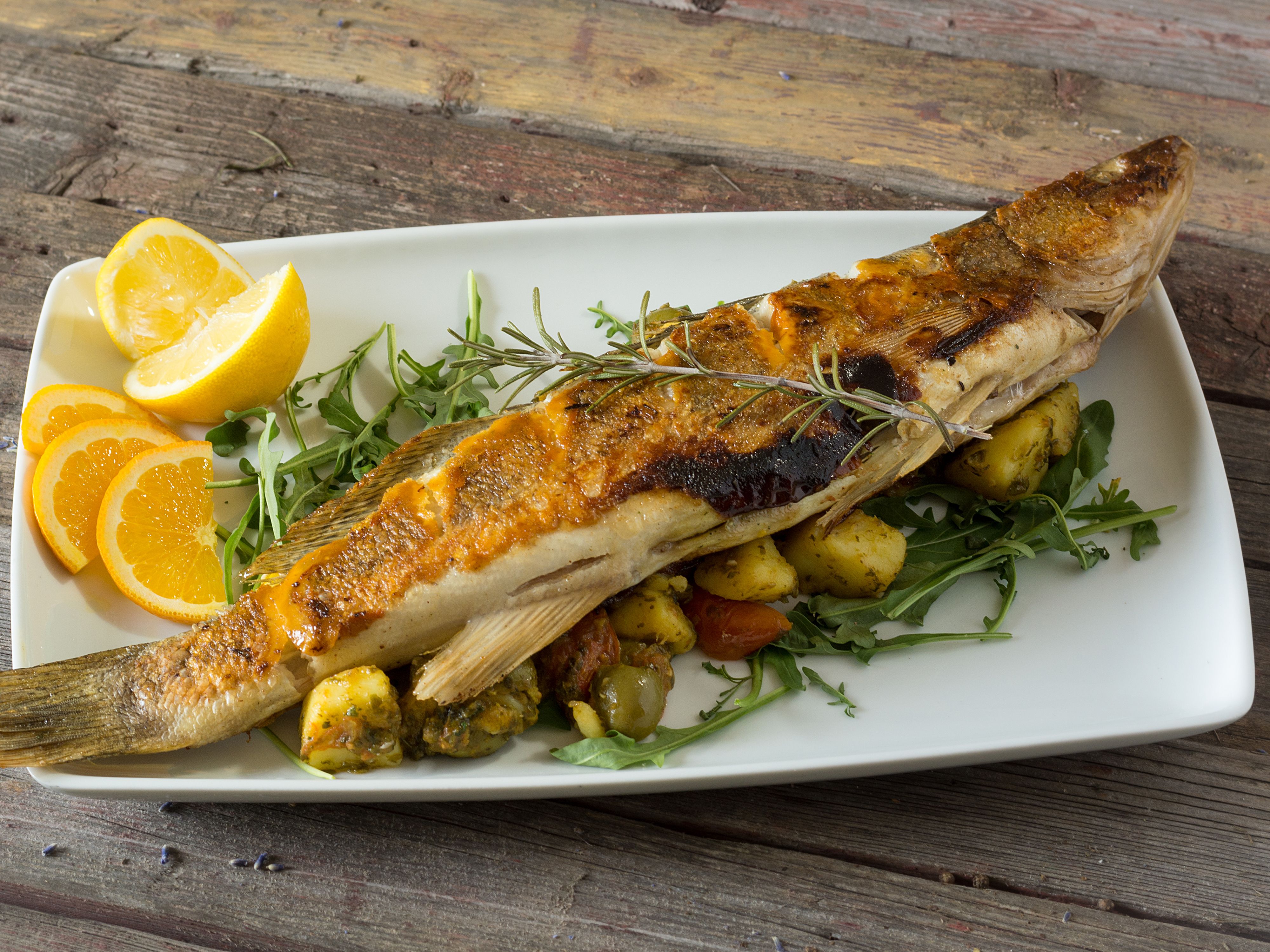 Karadeniz somon, fener kavurma, levrek külbastı. Ekmek, mısır ekmeği ile