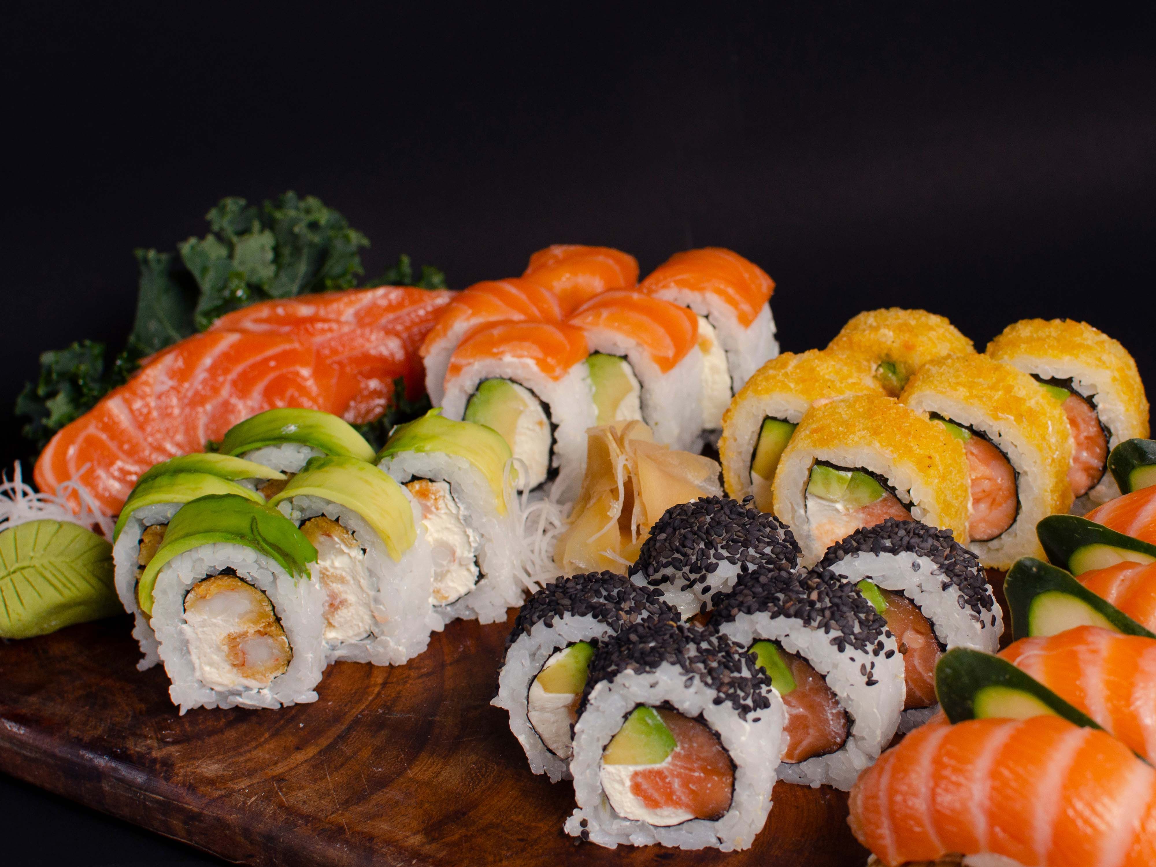 Avokado, salatalık, Japon turbu, havuç, ıspanak, sosis, susam yağı