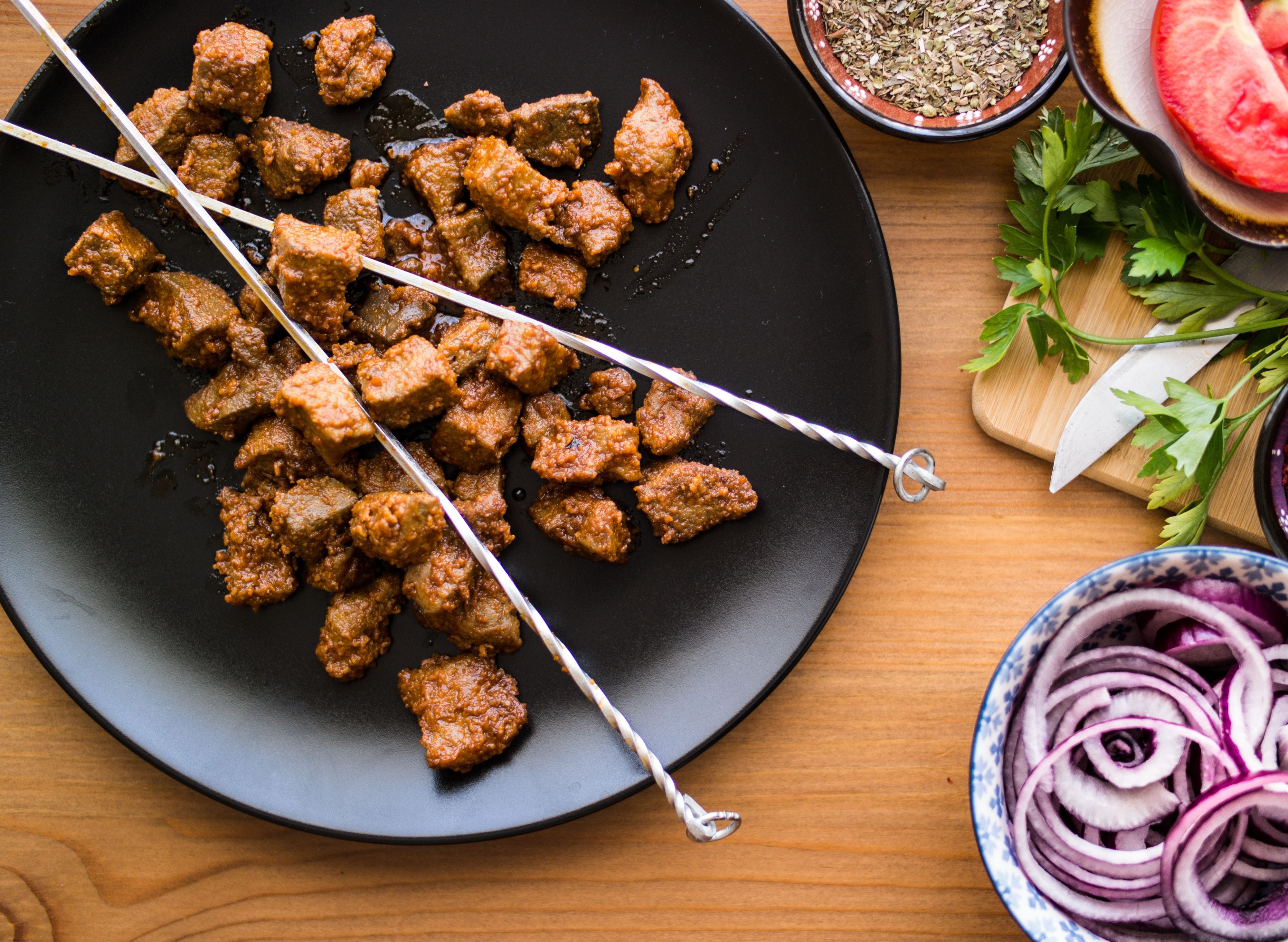 Pilav, közlenmiş domates, közlenmiş biber, salata ile
