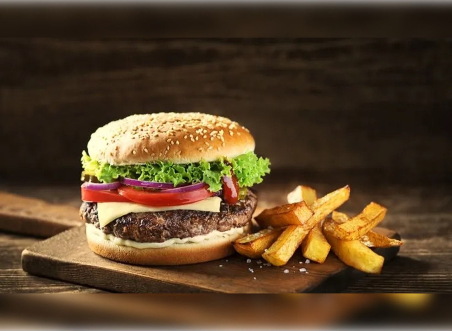 Hamburger köftesi, cheddar peyniri, çıtır soğan, özel sos