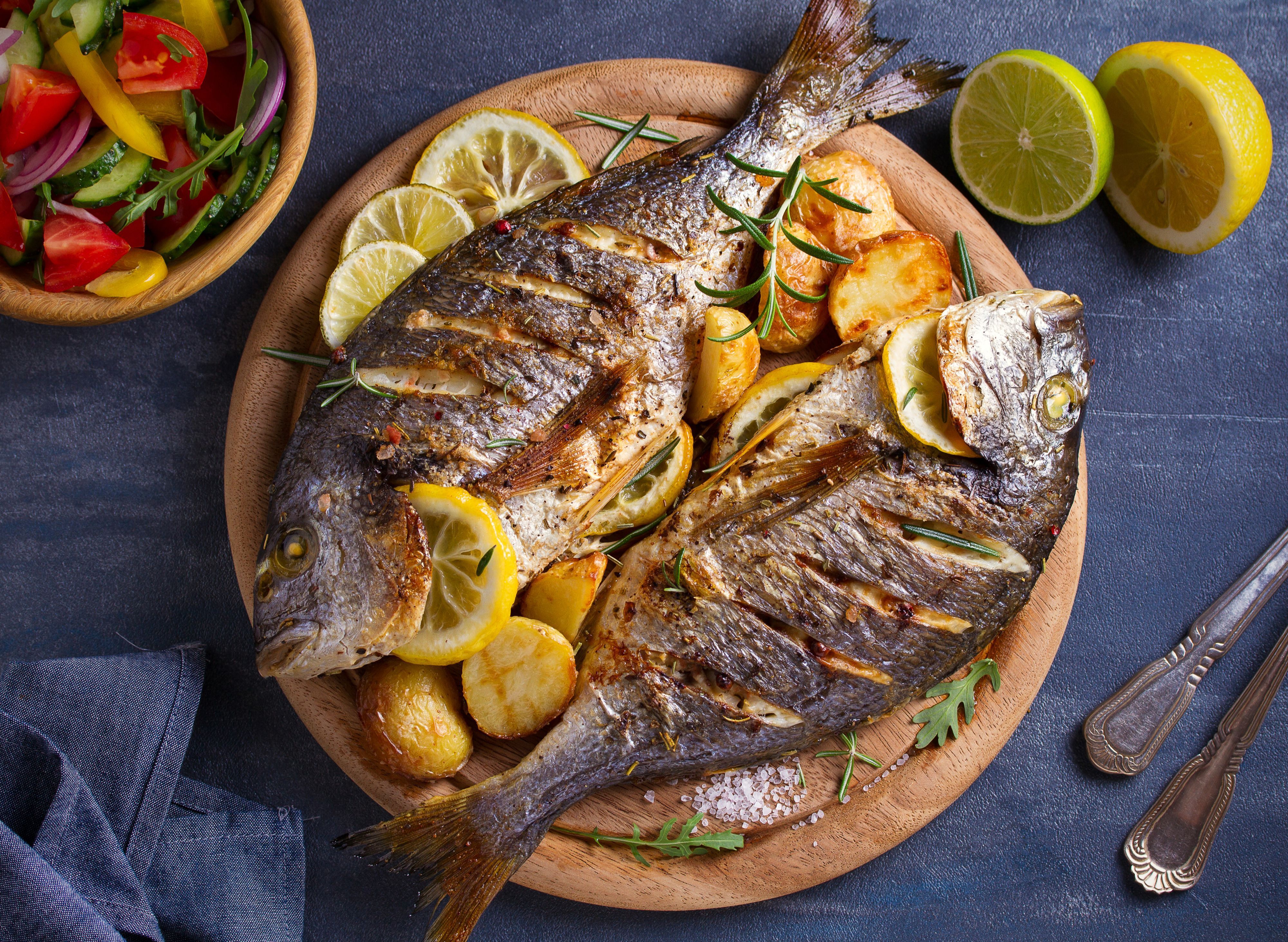 Levrek, patates, krema, kampari çiçeği, roka