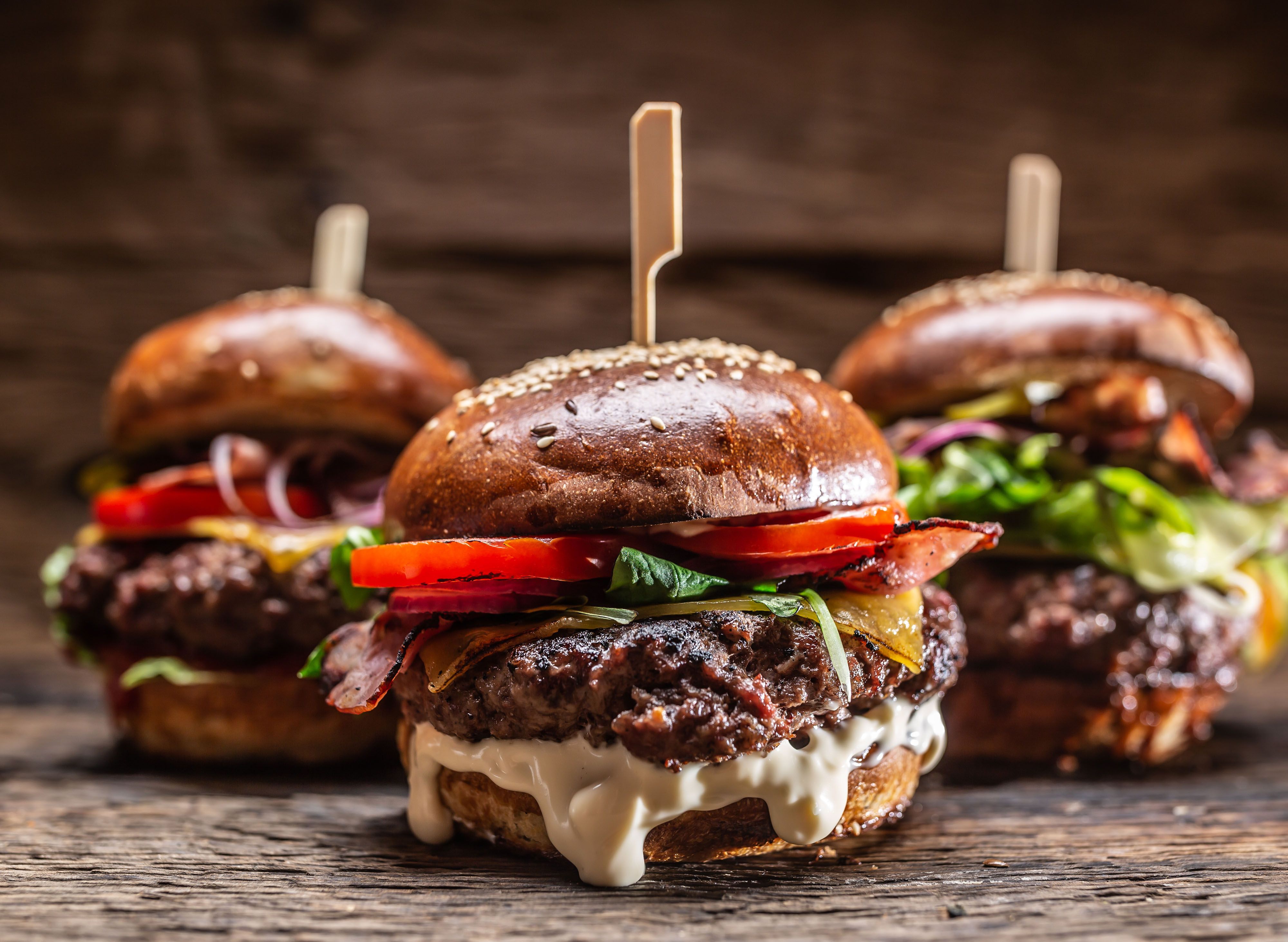 Burger köftesi, cheddar peyniri, karamelize soğan, barbekü sos, göbek marul, yeşillik, turşu, sos