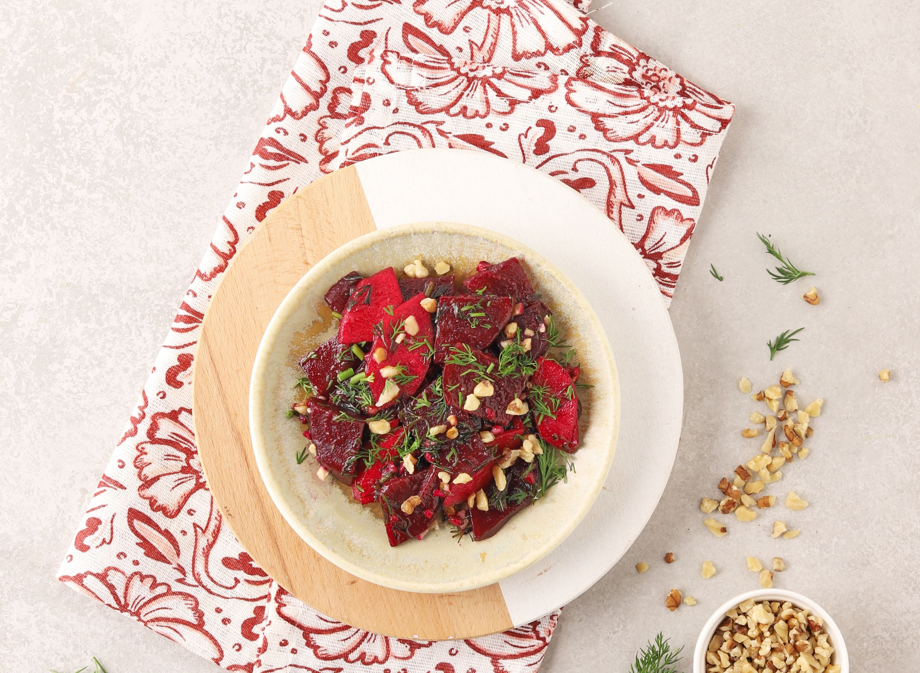 Pancar, ekşi elma, zeytinyağı, ceviz, dereotu, tuz, limon, nar ekşisi