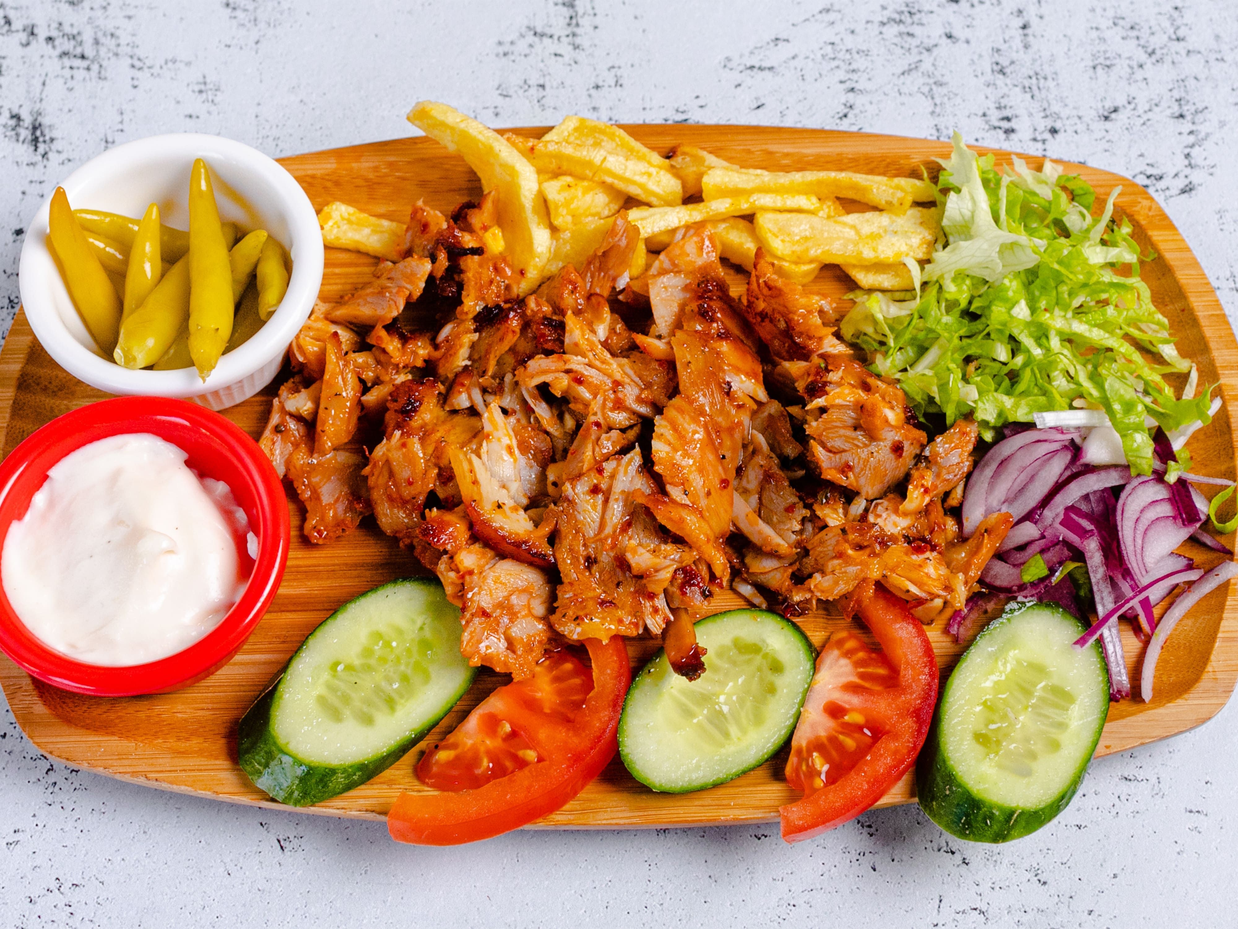 100 gr. tavuk döner, Domates, Salatalık turşusu, Kıvırcık